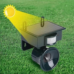 - Овој соларен растерувач на животни и птици има звучник со високи децибели и трепкачки светла, што може да помогне да се одвратат дивите животни од предизвикување штета на посевите, градините и другите надворешни простори