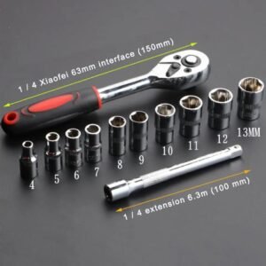 - 1/4″ DR: 4; 4,5; 5; 5,5; 6; 7; 8; 9; 10; 11; 12; 13; 14 mm