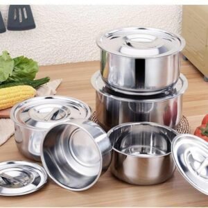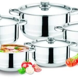 - Во сетот добивате 5 садови за готвење и 5 поклопци за нив