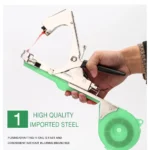 Процесот на врзување е 5-10 пати побрз отколку со рачно врзување. Спојувачот за градина тежи 0,5 кг. Спојувачот се испорачува во фабричка кутија со 1 лента, по 30 метри. Спојувачите се наоѓаат во внатрешноста на спојувачот. Алатката за градина е неопходен алат за градинар, кој се користи за врзување растенија од која било дебелина. Може да се справи дури и со тешко достапни гранки и стебла, обезбедувајќи им сигурна потпора и заштита од свиткување и оштетување. Алатка-спојувач или градинарска хефталка за врзување растенија. Идеален за сите видови гранки, како што се грозје, домати, краставици, дињи, модри патлиџани и многу повеќе.