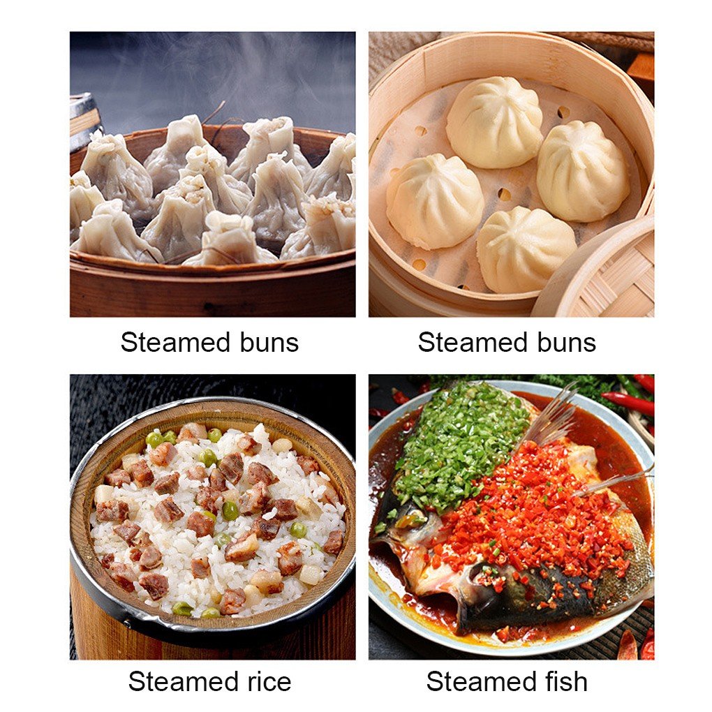 Оваа бамбусова решетка е идеална за готвење на различни видови на храна, вклучувајќи пилешко месо, риба, зеленчук и дури и десерти. Можете да ја користите на пареање на храната во вашиот таван или во пареање на храната во вашиот кујнски сет за пареање.