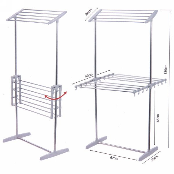 Одлично решение за сушење на облеки во ситуации кога немате простор за распоредување на облеките, вертикалната сушара има капацитет за сушење на повеќе парчиња облеки и додатоци за сушење како што се чорапи и мали парчиња облеки. Со своите различни нивоа на сушење, можете да ги прилагодите потребите на вашите облеки и да ги сушите на најприкладниот начин.