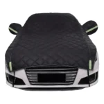 Изработена од висококвалитетен 4-слоен материјал, оваа прекривка обезбедува максимална отпорност и термичка изолација, гарантирајќи дека вашиот автомобил ќе остане чист, ладен и заштитен во сите временски услови.