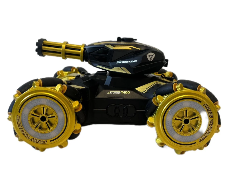 Оваа играчка тенк е опремена со најновата технологија за далечинска контрола, што значи дека можете да го контролирате тенкот со помош на џојстикот и ракавицата. Оваа комбинација ви овозможува да го контролирате тенкот со голема прецизност и леснотија.