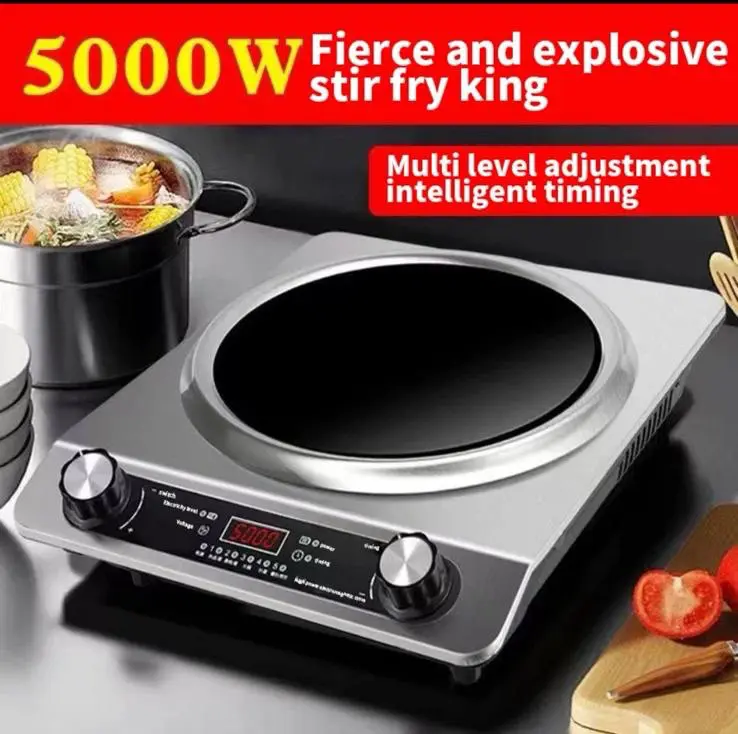 Ова индукциско решо е вашето совршено решение за брзо и ефикасно готвење. Со моќност од 5000W и вдлабната површина за тродимензионално загревање, го прави секој оброк совршено подготвен за кратко време.