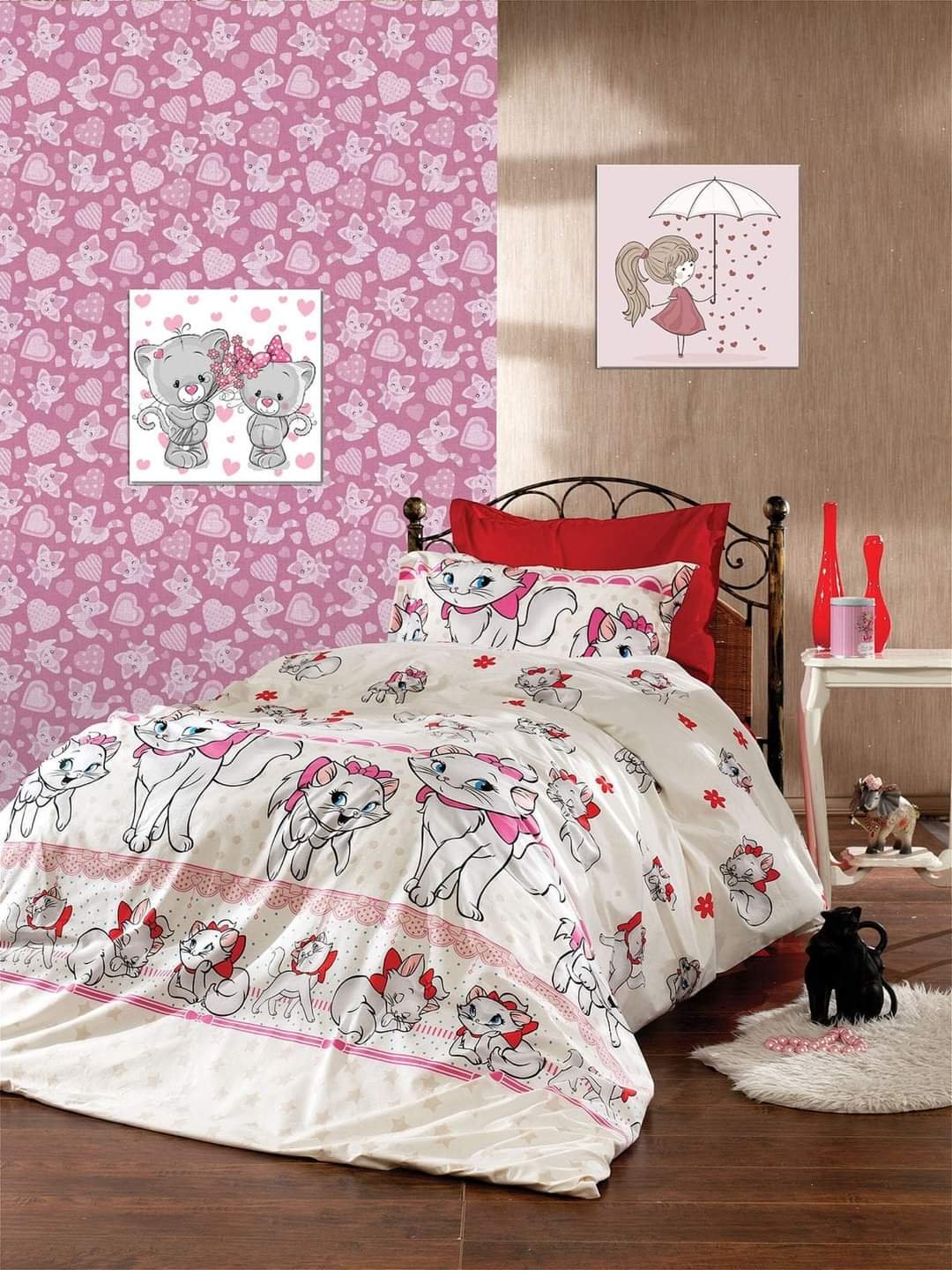 Нашата детска постелнина со симпатичниот дизајн на Мачето Мари е создадена за да ја разубави собата на вашето дете и да овозможи пријатно чувство на мекост и безбедност. Изработена од 100% висококвалитетен памук, таа е идеална за нежната кожа на децата.
