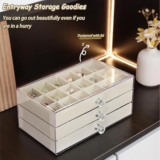 Оваа кутија за накит со 3 фиоки е совршен додаток за секој кој сака уреден и лесен пристап до своите модни додатоци. Со својот елегантен дизајн и функционални карактеристики, ќе го направи чувањето на вашиот накит пријатно и организирано искуство.