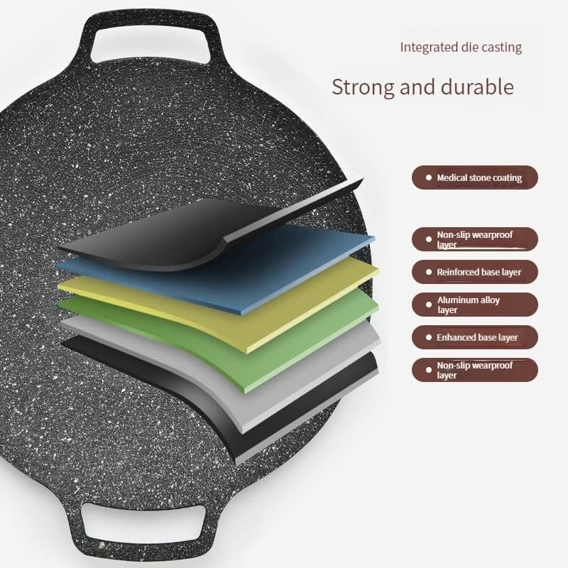 Оваа BBQ тава е изработена од висококвалитетен материјал, што гарантира долготрајност и издржливост. Нелепливата површина на тавата спречува храната да се залепи и го олеснува чистењето по употребата. Со нејзината помош, ќе можете да приготвите различни видови на скара, како што се месо, пилешко, риба, зеленчук и многу други.