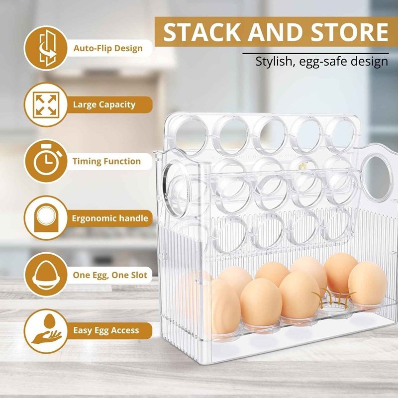 Овој иновативен организатор – полица е идеално решение за складирање и организирање на јајца. Со својот уникатен дизајн, овој практичен производ не само што ги зачувува јајцата долго време, туку и максимално го користи просторот во твојот фрижидер или кујнски кабинет.