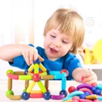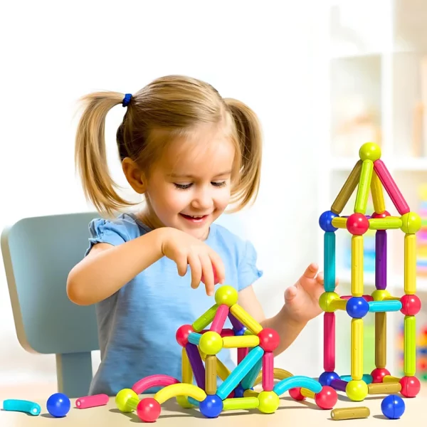 За правење различни фигури: комплетот содржи магнетни топчиња и стапчиња со безброј можности за поврзување и правење 2D/3D фигури