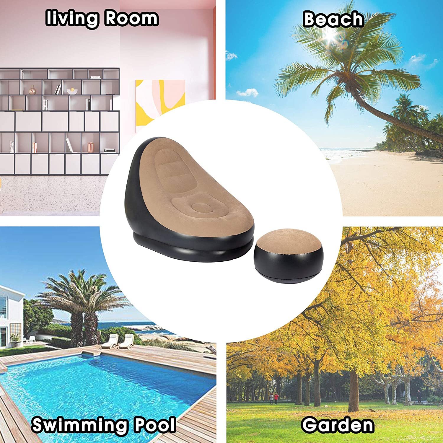 2. Надувување и дефлација: Со помош на вградениот вентил, фотелјата и табуретката можат брзо и лесно да се надуваат и испразнат.