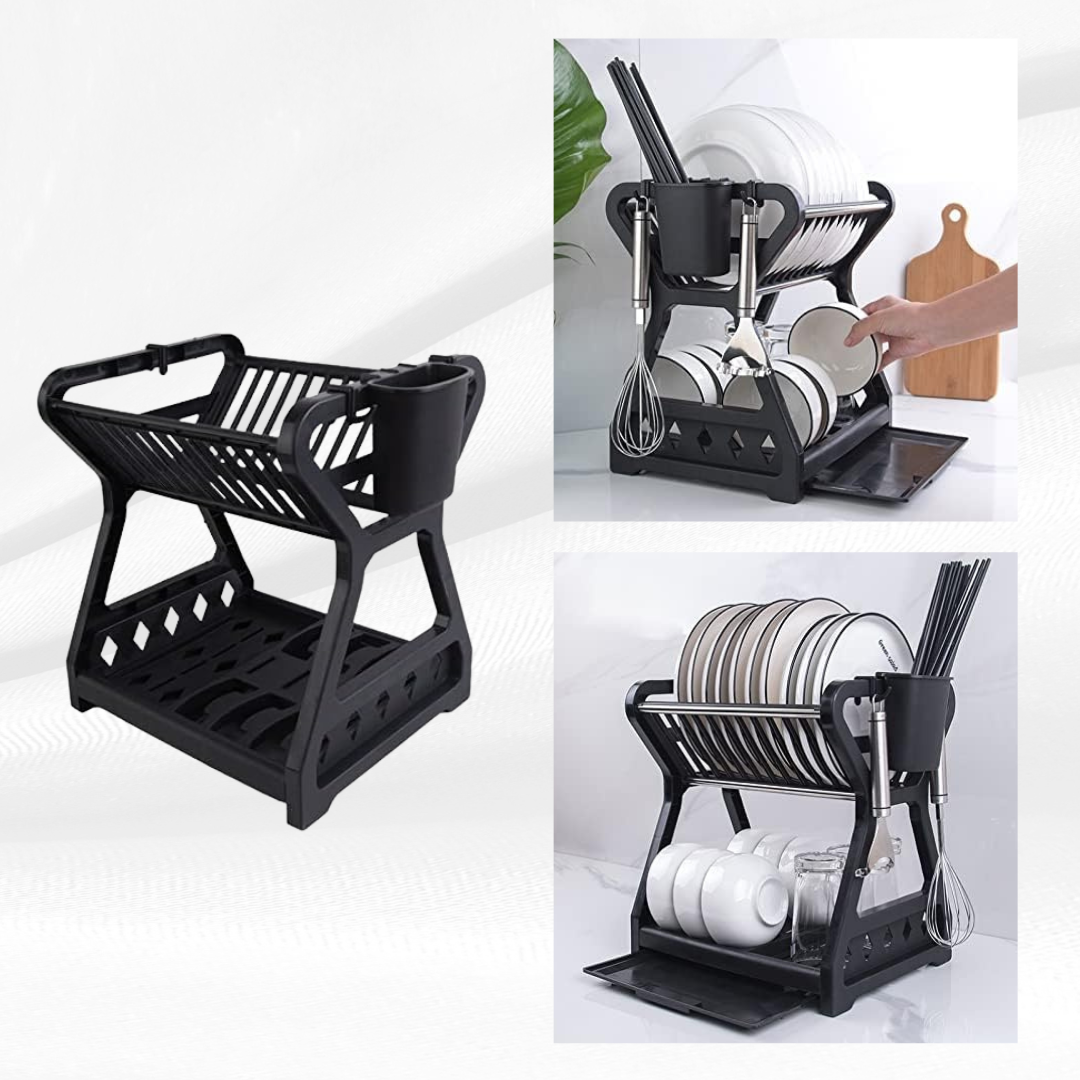 Цедалката за садови со две нивоа е идеално решение за секоја кујна која бара организираност и функционалност. Изработена од висококвалитетен PP материјал, оваа цедалка има стабилна структура, силна носивост, отпорност на корозија и гребење. Благодарение на нејзиниот двослоен дизајн со голем капацитет, лесно ги задоволува вашите дневни потреби за складирање на садови. Освен што служи како цедалка, таа има и подлога за собирање на водата од садовите, што значи дека нема потреба да се грижите за влажни работни површини – вашата кујна ќе остане чиста и уредна.
