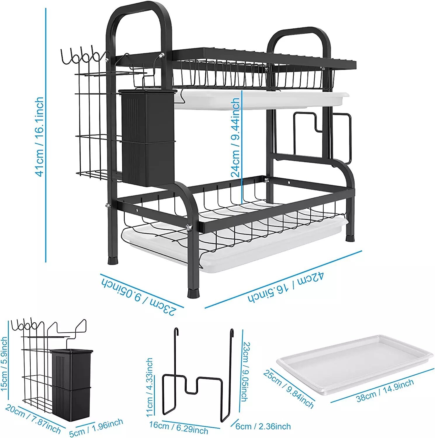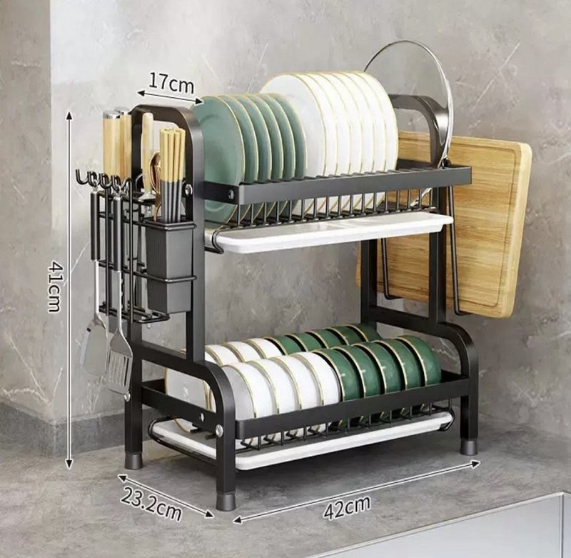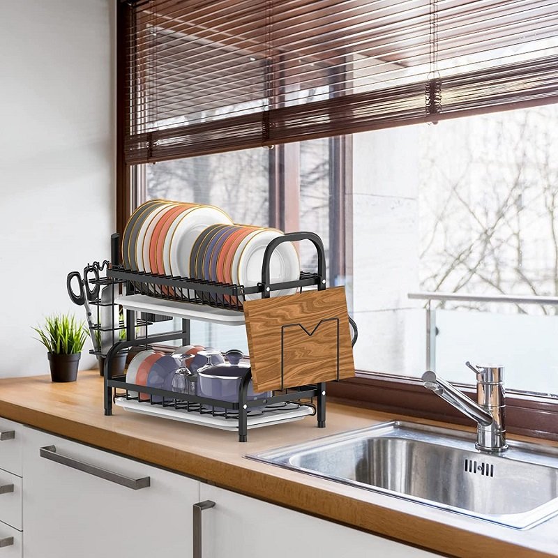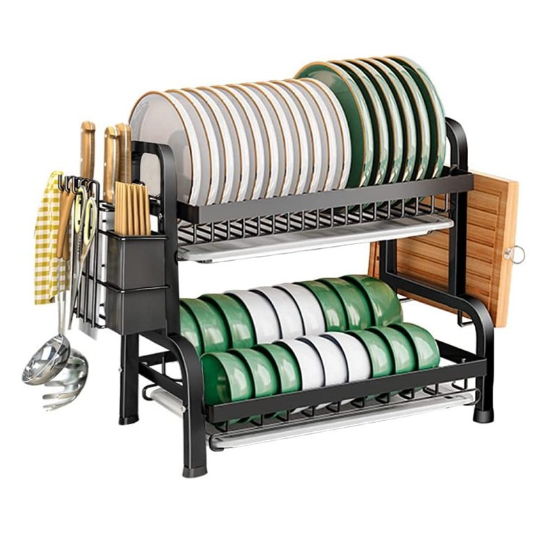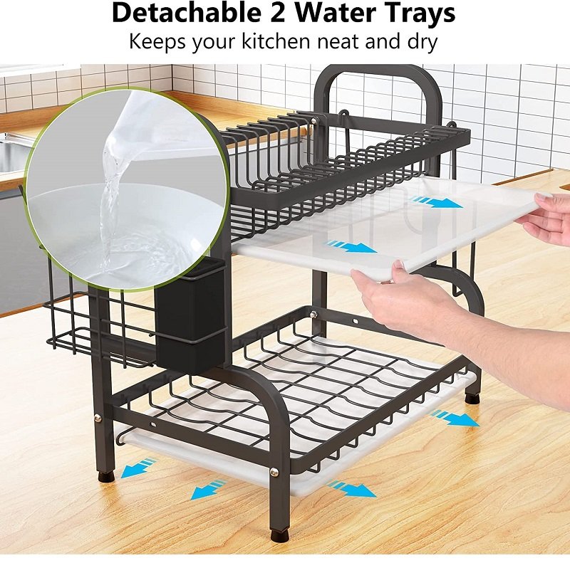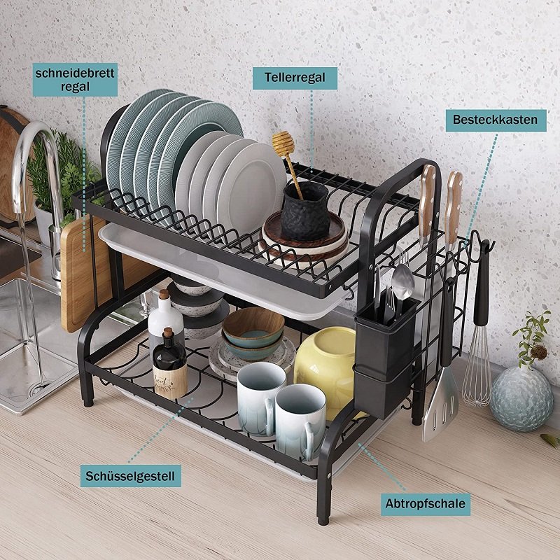 1. Мултифункционален дизајн: Цедилникот за кујнски садови е опремен со различни решетки, држач и куки за да ги сместите сите ваши кујнски садови.