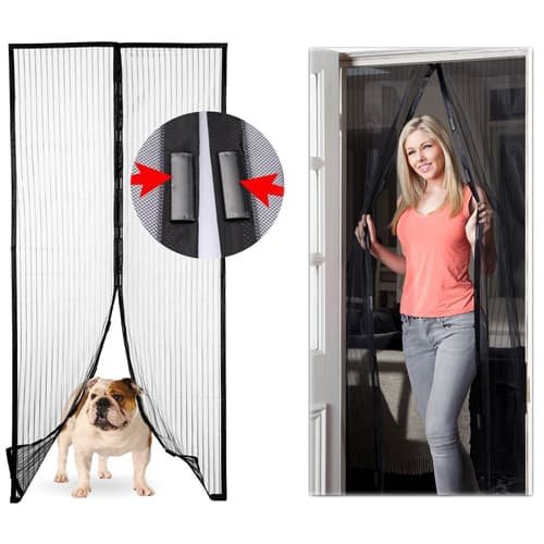 • Крај на досадните инсекти! Мрежата ги спречува да влезат благодарение на магнетните брави долж завесата. Доколку рацете ви се зафатени, завесата со нејзиното магнетно закопчување ќе се затвори автоматски после вас.