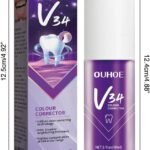 Белеење на заби: Овој V34 коректор за боја на пена содржи напредна формула против дамки која ги отстранува честичките од храна и длабоките дамки во забите предизвикани од кафе, чај, вино, тутун и безалкохолни пијалоци.