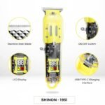 Shinon Sh-1931 Pro Li е професионален безжичен тример за коса, дизајниран за прецизно обликување и средување. Опремен со самоостречки сечила од нерѓосувачки челик, овој тример обезбедува мазно и рамномерно сечење, без разлика дали е на сува или влажна коса.